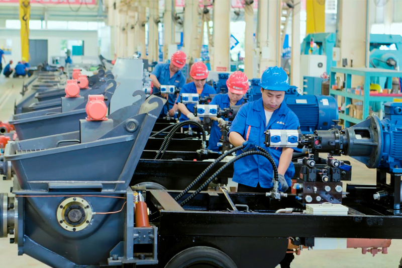 HBT-12D型泵送式濕噴機(jī),是我公司結(jié)合混凝土泵送式輸送和稀薄流輸送的優(yōu)點(diǎn),研制開發(fā)的液壓泵送式濕噴機(jī)系列產(chǎn)品之一。該機(jī)采用液壓傳動(dòng),以泵送方式將砼輸送至一定距離 或至噴頭處,再用壓縮空氣將砼噴射到支護(hù)面上。同時(shí),在噴頭處加入適量速凝劑與砼混合,速凝劑的添加量通過(guò)計(jì)量泵調(diào)節(jié)。采用三泵結(jié)構(gòu),換向速度快,脈沖···